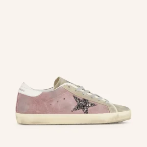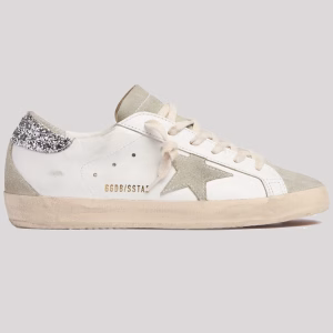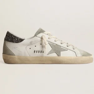 GG Women’s Super Star featuring gray star detail and dark gray glitter heel tab sneakers