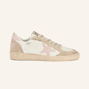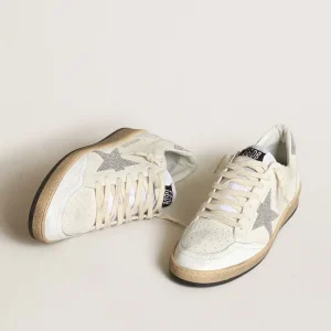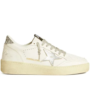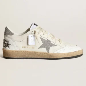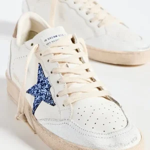GG Ball Star Low-Top Sneakers in White Leather featuring Light Blue Star & Taupe Accents