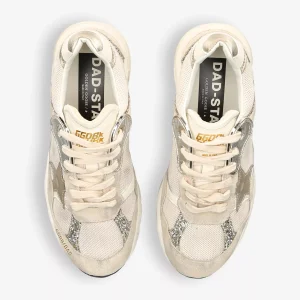 GG Dad-Star trainers — cream leather & mesh, star patch, glitter trim