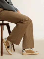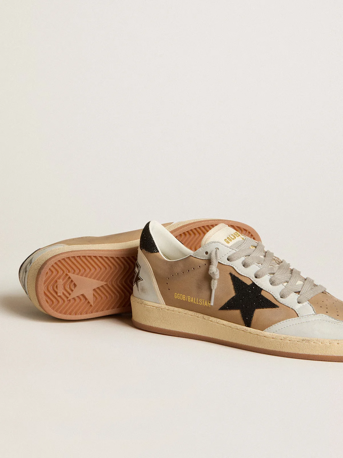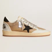 Inspired by the 80s spirit. Our Ball Star sneakers carry an American campus flair caught between a hoop shot and a skateboard ride. This model with a beige nubuck and white nappa leather upper showcases a black Swarovski crystal star and heel tab. The ice-gray laces complete the look: timeless pieces that never lose appeal.