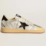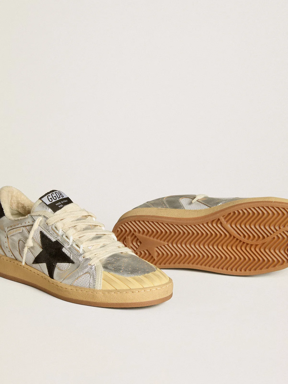 GG Ball Star LAB in silver leather with black suede star and heel tab design