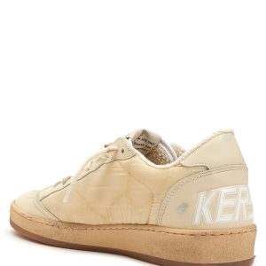 These sleek GG sneakers feature a cream leather and mesh upper accented by a contrast star, glitter edging, and paneled stitching. With a rounded toe, lace-up fastening, branded heel, and distressed sole, these handmade Italian sneakers infuse classic design with vintage personality.