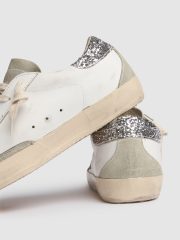 These GG Super-Star sneakers feature a white leather upper with a 20mm heel, crafted in Italy for a look that’s both timeless and a touch rebellious. A front lace-up and logo details complement the brand’s uniquely varied distressed finish. With a rugged rubber sole, they balance comfort and bold style with ease.