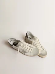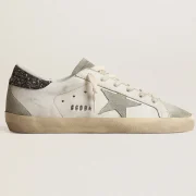 A timeless icon, refreshed. These Super-Star sneakers distill GG’s spirit of reinvention: a white leather upper set off by a gray suede star and a dark gray glitter heel tab. A gray suede back insert adds dimension, while cream laces soften the palette—an effortless choice for lovers of classics with a contemporary twist.
