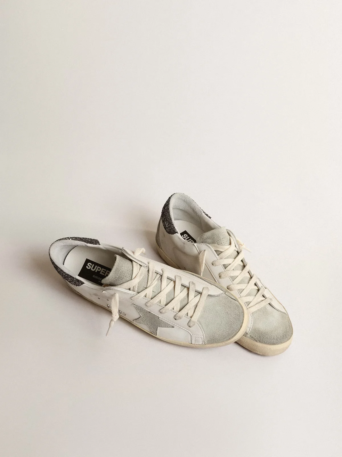 GG Women’s Super Star featuring gray star detail and dark gray glitter heel tab sneakers