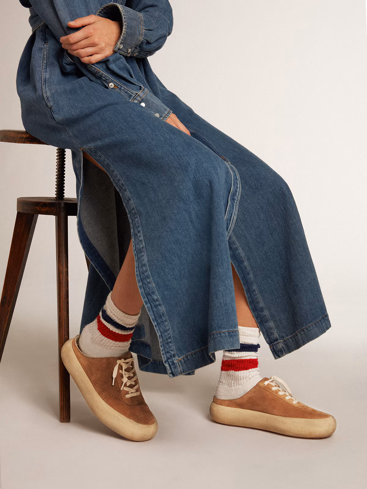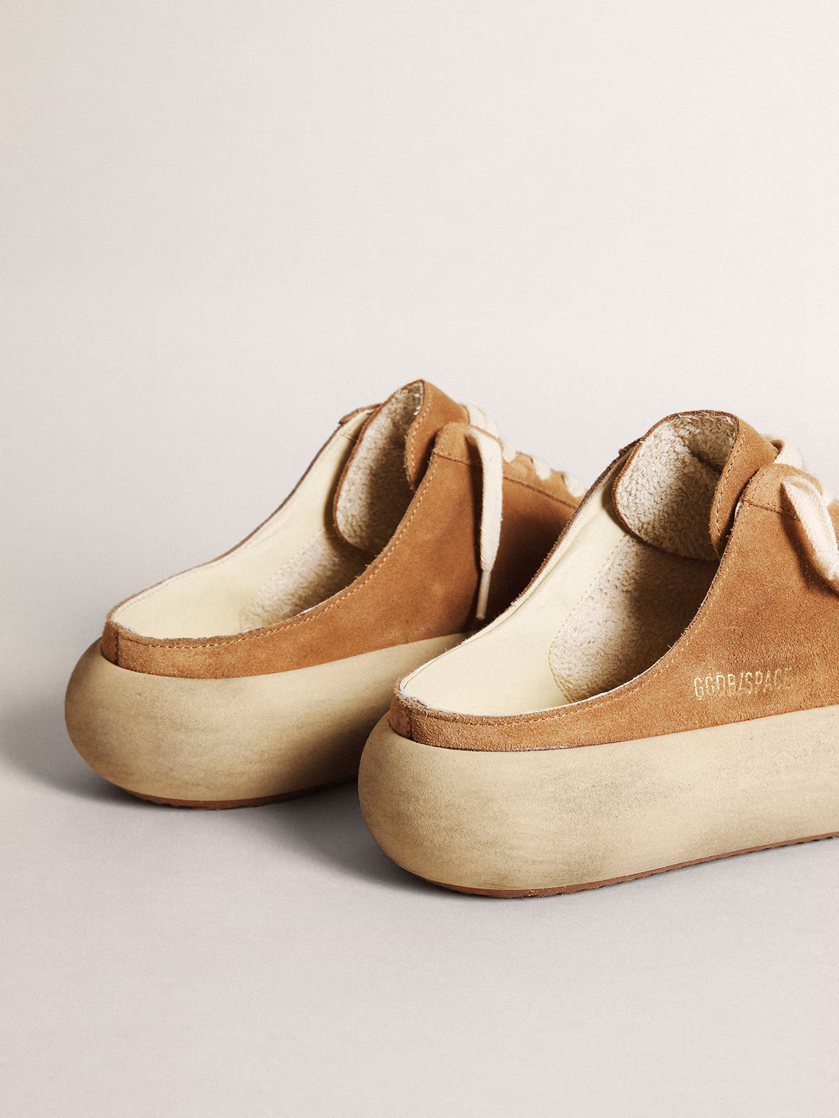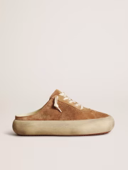 Women’s Space-Star Sabot crafted in tobacco-colored suede featuring perforated star detail